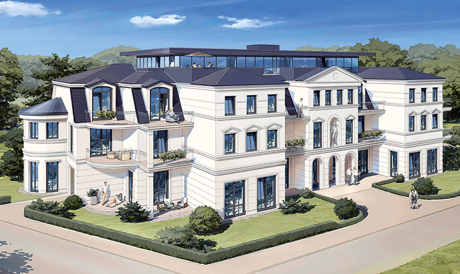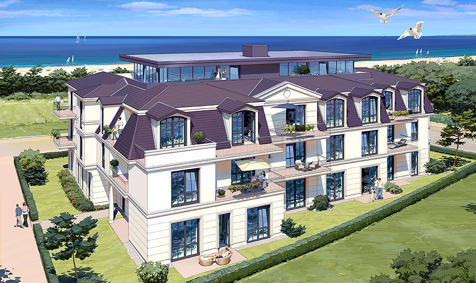 Unmittelbar neben der Seebrücke des Ostseeheilbades Zingst bietet das Haus mit 20 Suiten und 3 Penthouses Erholung und Exklusivität pur. Mit dem Bau wurde im Juni 2014 begonnen, die Fertigstellung ist im Februar 2016 erfolgt. Aktuelle Bilder zum Baufortschritt sehen sie unten unter BAUFORTSCHRITT.